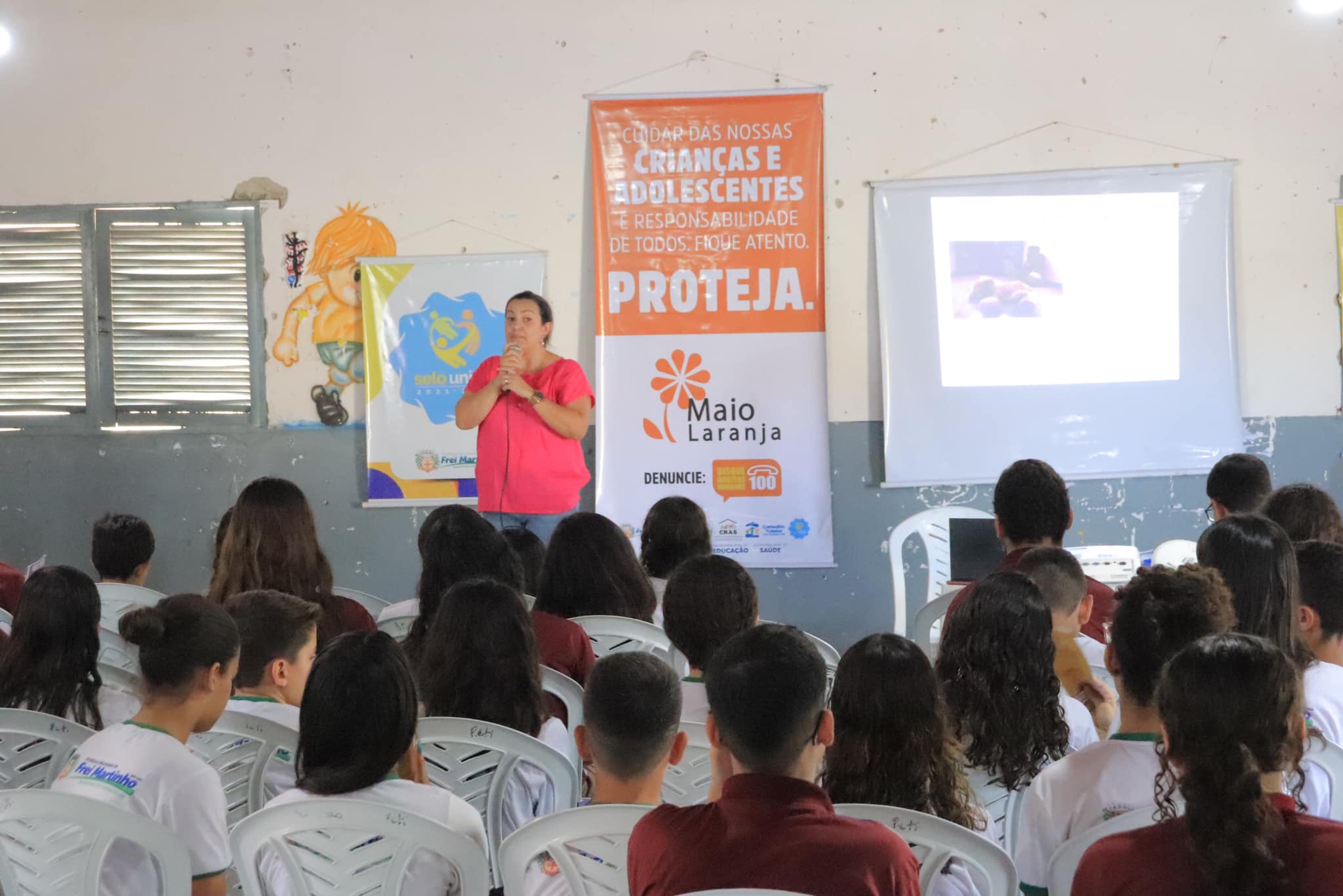 a programação do 18 de maio, ontem (22/05) as equipes do CRAS e Conselho Tutelar realizaram palestras educativas nas unidades escolares EMEF Eliete Souza de Araújo Silva e ECI Prefeito Aguitônio Dantas.
