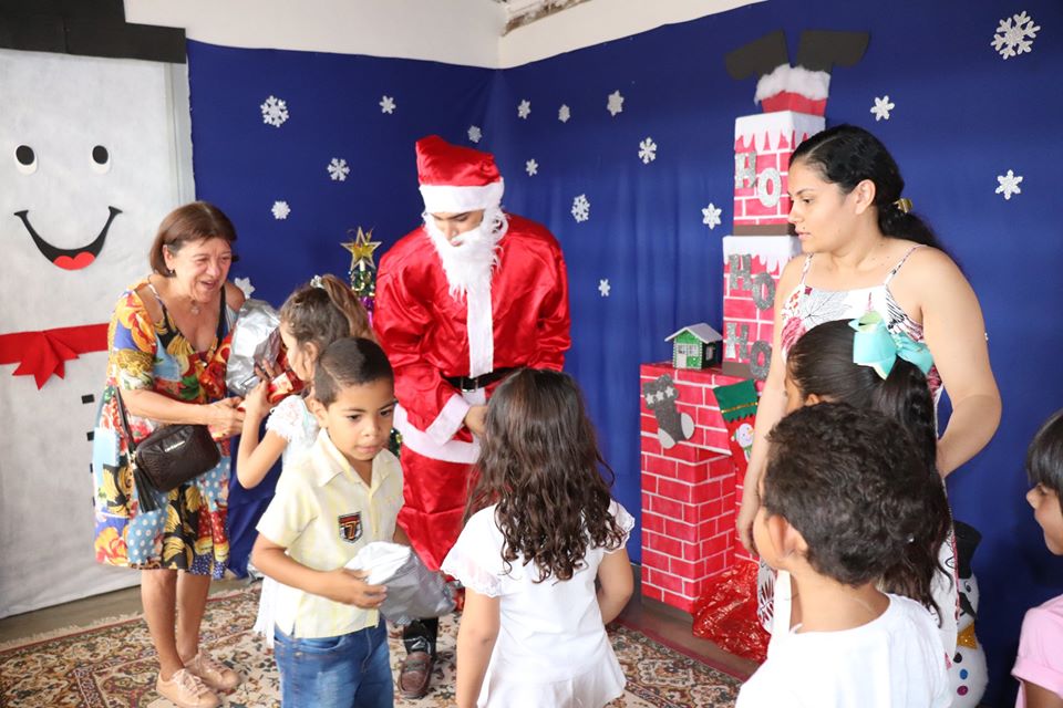 Os Alunos apresentaram uma peça teatral com o tema natalino e receberam brindes do papai Noel que esteve animando a festa de encerramento.