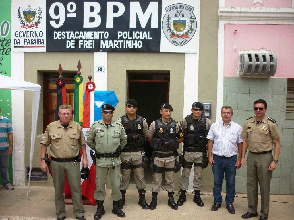 Na manhã da última sexta-feira, 15, foi reinaugurada a nova sede do Destacamento Policial Militar do município de Frei Martinho-PB que funcionará em um prédio público recuperado com recursos próprios nesta gestão. Fizeram-se presentes à solenidade o Comandante do 9º Batalhão de Polícia Militar, o Major Afonso Antônio Galvão, o Prefeito Aguifaildo Lira Dantas (Aido), Vice Tião, Câmara de Vereadores, secretários municipais, alunos da rede municipal de ensino e membros da sociedade Civil local. De acordo com o Major Galvão, os militares do 9º BPM estão na cidade para dar continuidade ao bom trabalho que já vem sendo desenvolvido, possibilitando a redução de forma considerável dos índices de criminalidade e estão ao lado do cidadão de bem. O Comandante solicitou, ainda, o apoio da população no sentido de que estes venham a serem colaboradores da Polícia Militar na realização das atividades cotidianas de policiamento.