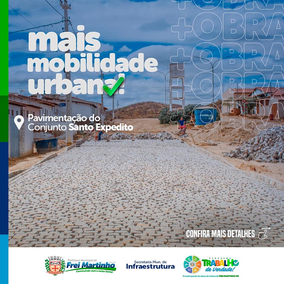 Os serviços de construção da pavimentação do entorno do conjunto Santo Expedito seguem a todo vapor em Frei Martinho.