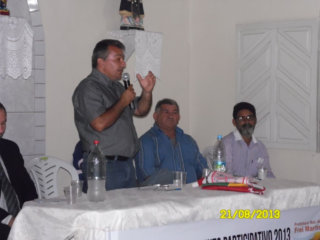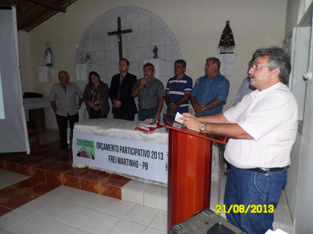 O Orçamento Participativo é um importante instrumento de complementação da democracia representativa, pois permite que o cidadão debata e defina os destinos de um município. Neste sentido, a Prefeitura Municipal de Frei Martinho, por meio do Prefeito Aguifaildo e do Vice Tião, realizam nas comunidades esta ação por acreditar que esta é a melhor forma de descentralizar ideias, dividir responsabilidades e sucessos. Este orçamento contemplará ações para o quadriênio 2014/2017 e terá como instrumento básico a opinião pública. Neste dia 21/08 o Prefeito Aguifaildo juntamente com autoridades e equipe responsável estiveram realizando o "Orçamento Participativo na Comunidade Quixaba" A audiência foi realizada, Na Capela de São Roque na comunidade Quixaba e contou com a participação de pessoas de diversos seguimentos da comunidade rural e urbana.