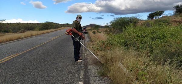 Prefeitura Municipal através da Secretaria Municipal de Infraestrutura realiza limpeza do acostamento do asfalto.