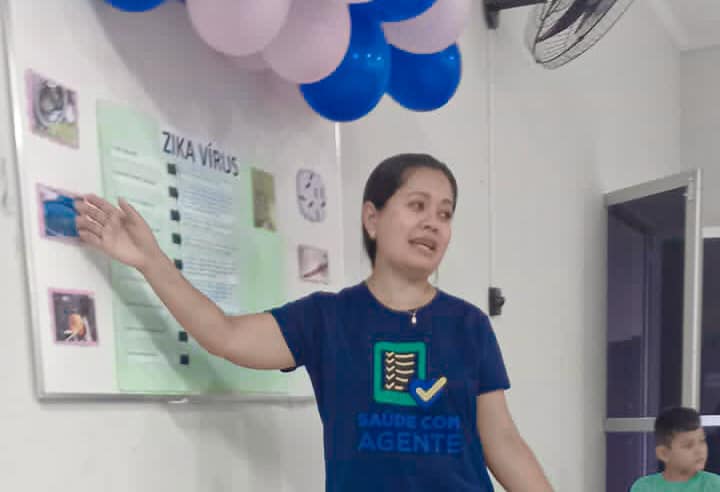 Na última quarta-feira 26 de abril, foi realizada no auditório do antigo PSF, mais uma ação do curso Saúde com Agente. Desse vez, o público alvo foram as gestantes do município e também abordaram duas temáticas de grande relevância. A aluna Silvania Macedo trouxe uma roda de conversa, enfatizando os cuidados e riscos do Zika Vírus na gestação. O aluno Adriano Gomes apresentou e demonstrou como é realizada a Manobra de Heimlich em adultos, crianças e recém nascidos. Na ocasião, as futuras mamães praticaram a manobra e esclareceram suas dúvidas acerca das temáticas abordadas no encontro.