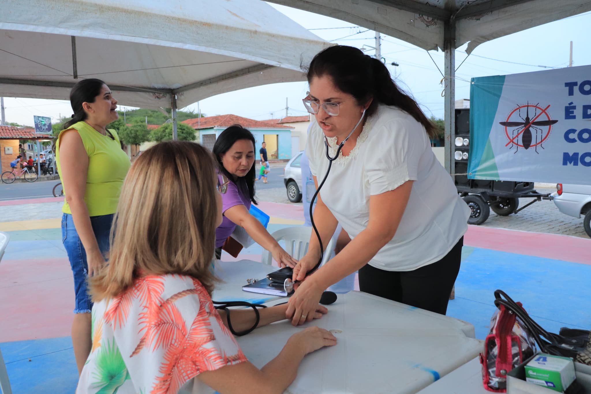 Dentro da programação realizada no dia 10/03, tivemos a tenda com a equipe da saúde, onde estiveram ofertando serviços básicos a população.