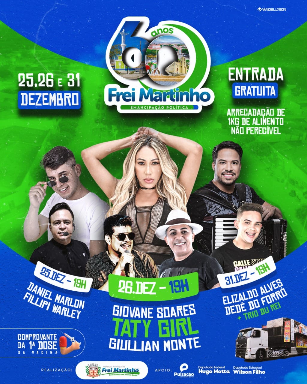 Vem aí, a festa de Emancipação Política. Dias 25, 26 e 31 de Dezembro *Tati Girl* *Giullian Monte* *Giovane Soares* E muito mais ... ————————————————— *Frei Martinho 60 Anos de História*