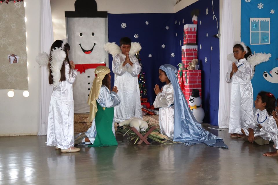 Os Alunos apresentaram uma peça teatral com o tema natalino e receberam brindes do papai Noel que esteve animando a festa de encerramento.