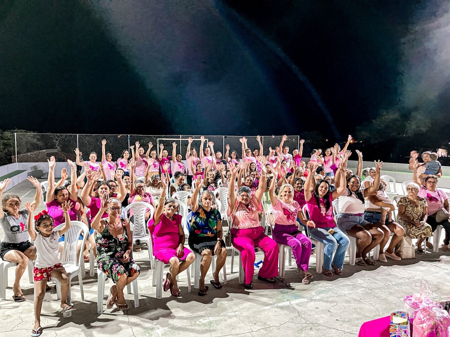 O encontro aconteceu na quadra da comunidade e reuniu diversas mulheres, contando com a presença da equipe de saúde.