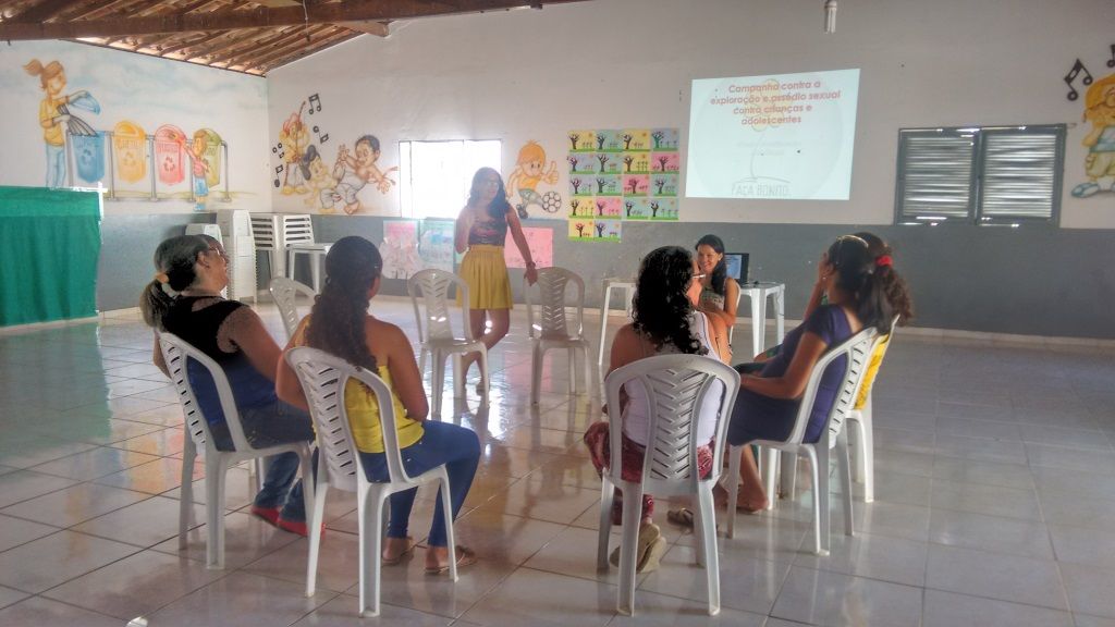 A primeira atividade foi alusiva a campanha de combate ao abuso, exploração e assédio sexual contra crianças e adolescentes e teve a participação das mães cadastradas no programa. A Psicóloga Giselle Maria Menezes Nascimento ministrou palestra de orientação sobre o tema. Estiveram presentes no evento, as oficineiras e monitoras que irão ministrar cursos para as mães no decorrer do projeto.