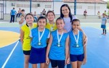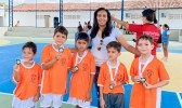 Entrega de medalhas no último dia dos Jogos Escolares 2023. Estiveram presentes o prefeito Tião Pinto, a vice-prefeita Maria de Fátima e a secretária de educação Rejane Medeiros.